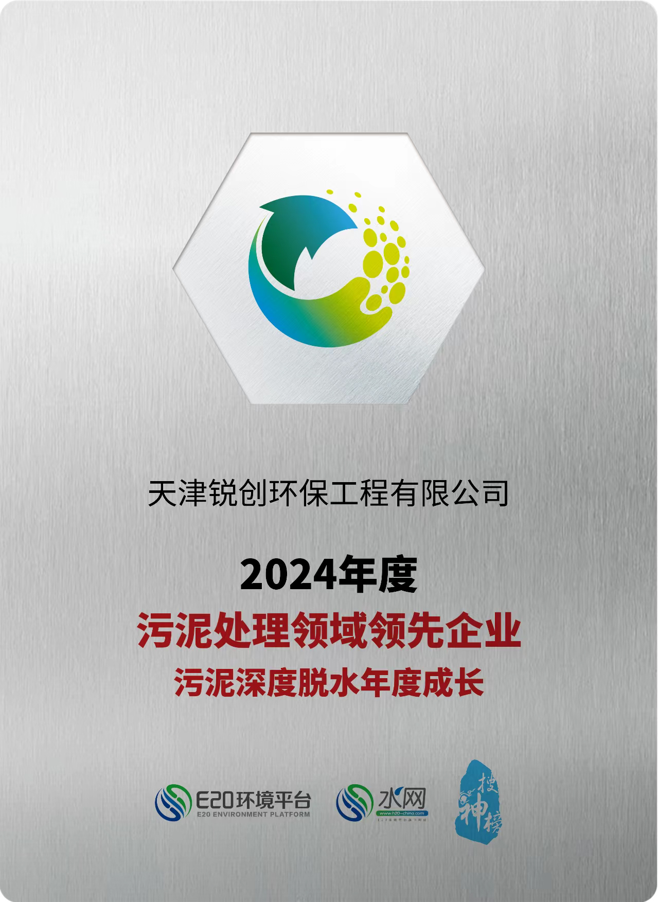 重磅喜訊!在剛剛落幕的"2025(第二十三屆)水業(yè)戰(zhàn)略論壇"上,天津銳創(chuàng)環(huán)保工程有限公司憑借硬核實力榮耀登頂,一舉斬獲 "2024年度污泥處理領(lǐng)域領(lǐng)先企業(yè) "即 "污泥深度脫水年度成長獎"!